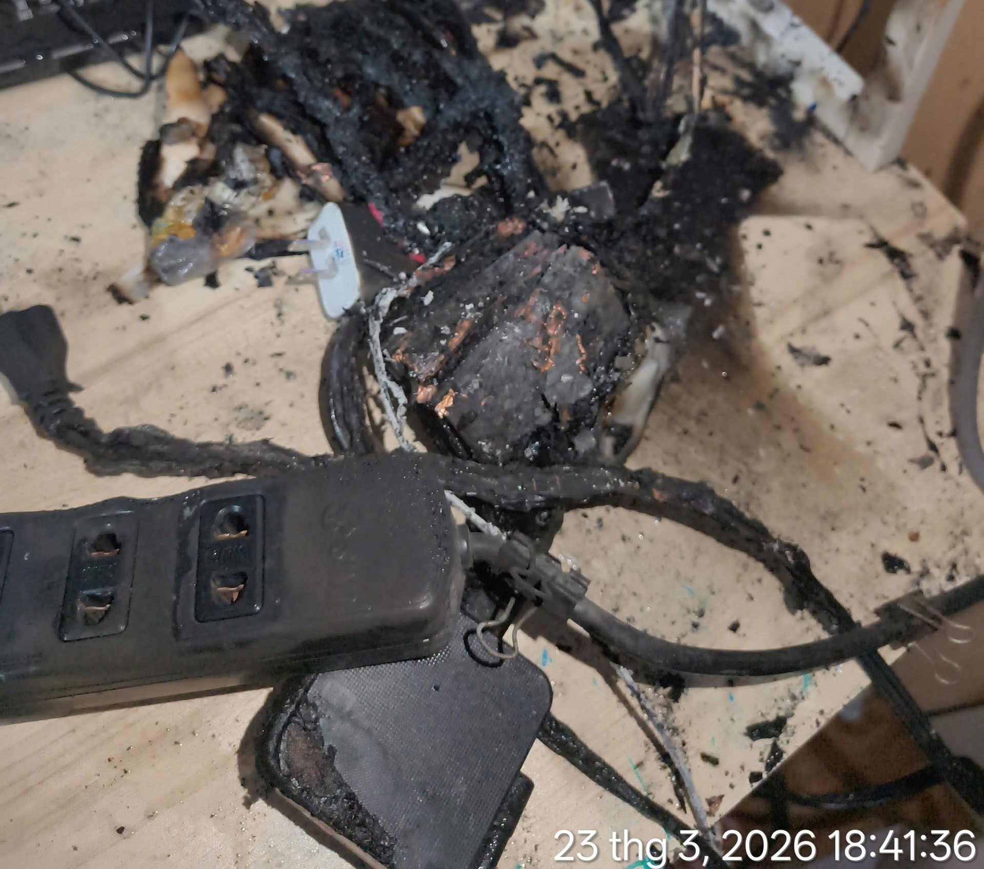 Ghi nhận thực tế, vào chiều tối ngày 23/03/2026, tại một căn hộ trên địa bàn TP.HCM đã xảy ra sự cố cháy cục bộ. Nguyên nhân ban đầu được xác định xuất phát từ việc chập điện của sạc dự phòng, dẫn đến phát sinh lửa tại khu vực ổ điện và các thiết bị lân cận.
