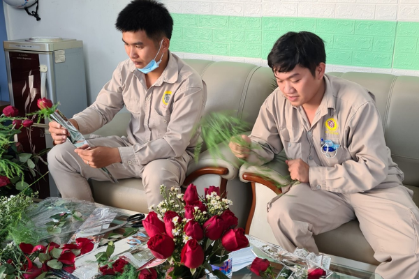 Tặng hoa cho nữ cư dân vào ngày 8/3
