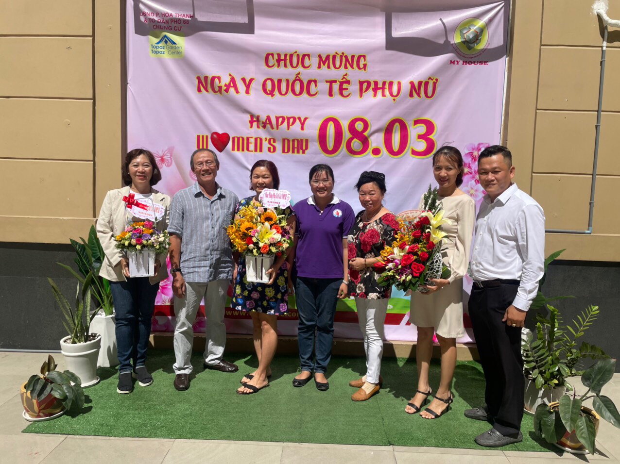 Trong ngày này, các nhân viên nam tại các Ban Quản lý MY HOUSE hăng hái chuẩn bị tặng hoa cho nữ nhân viên, nữ cư dân tại các chung cư.