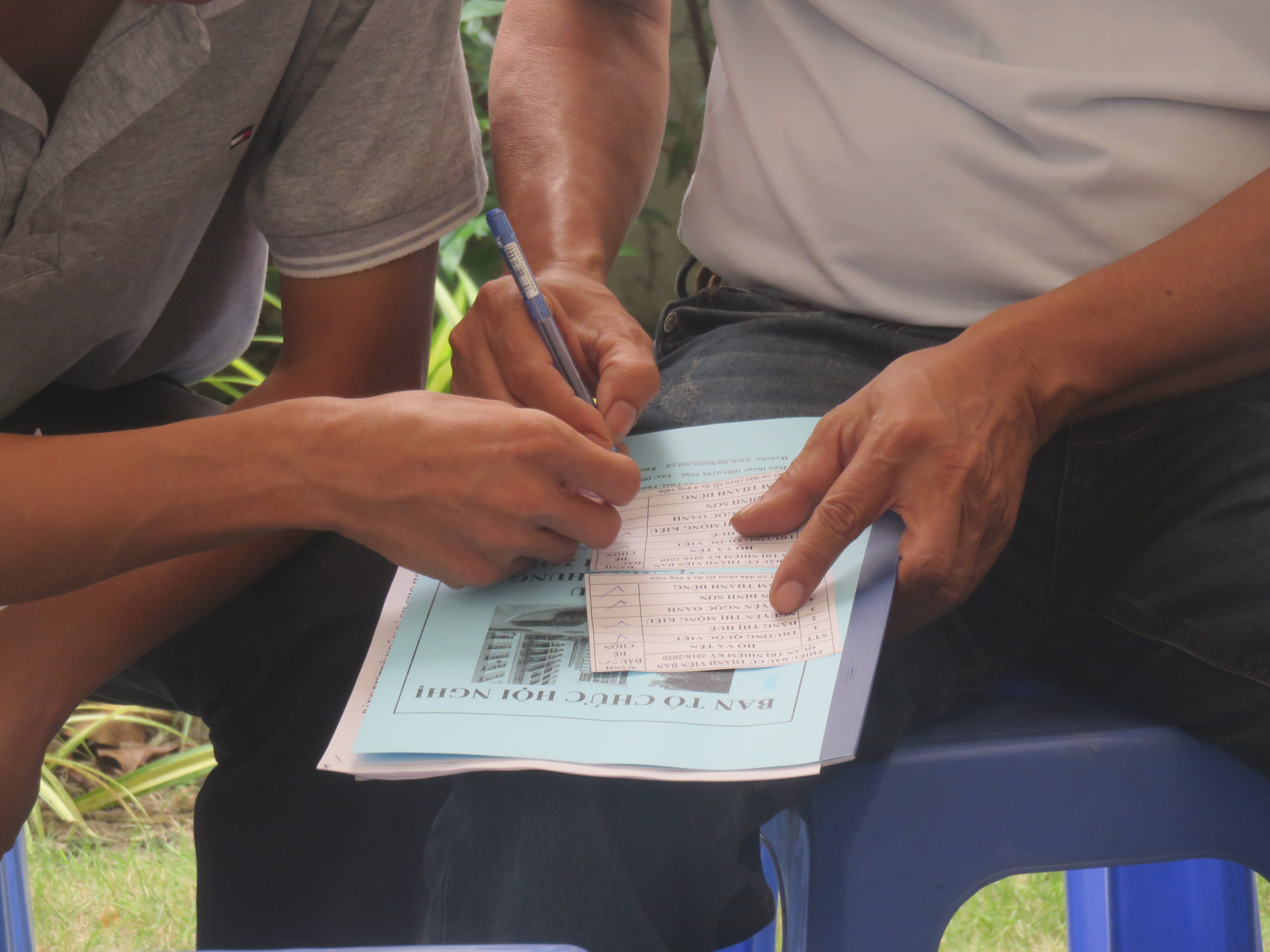 Cư dân chủ động đọc tham khảo tài liệu để góp ý trong Hội nghị chung cư