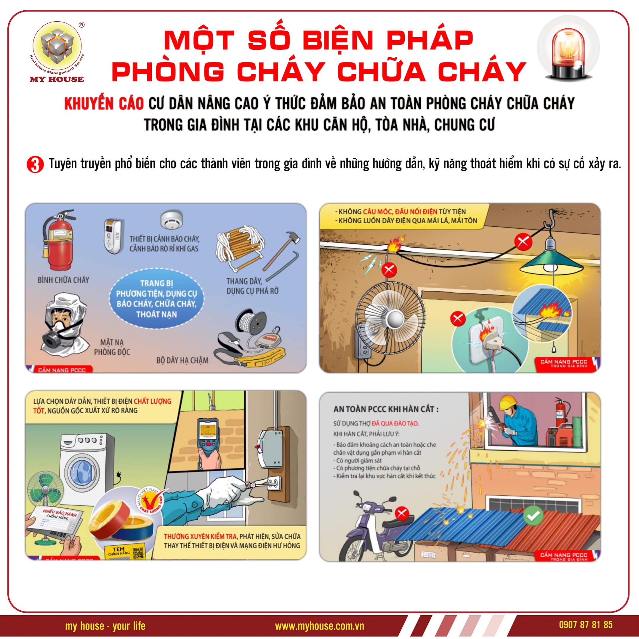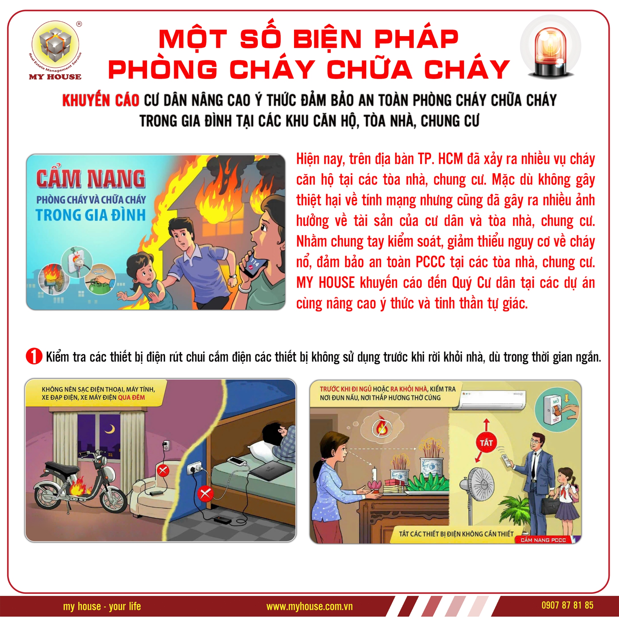 MY HOUSE - KHUYẾN CÁO QUÝ CƯ DÂN LUÔN LUÔN NÂNG CAO Ý THỨC ĐẢM BẢO AN TOÀN PHÒNG CHÁY TRONG GIA ĐÌNH TẠI CÁC KHU CĂN HỘ, TÒA NHÀ, CHUNG CƯ