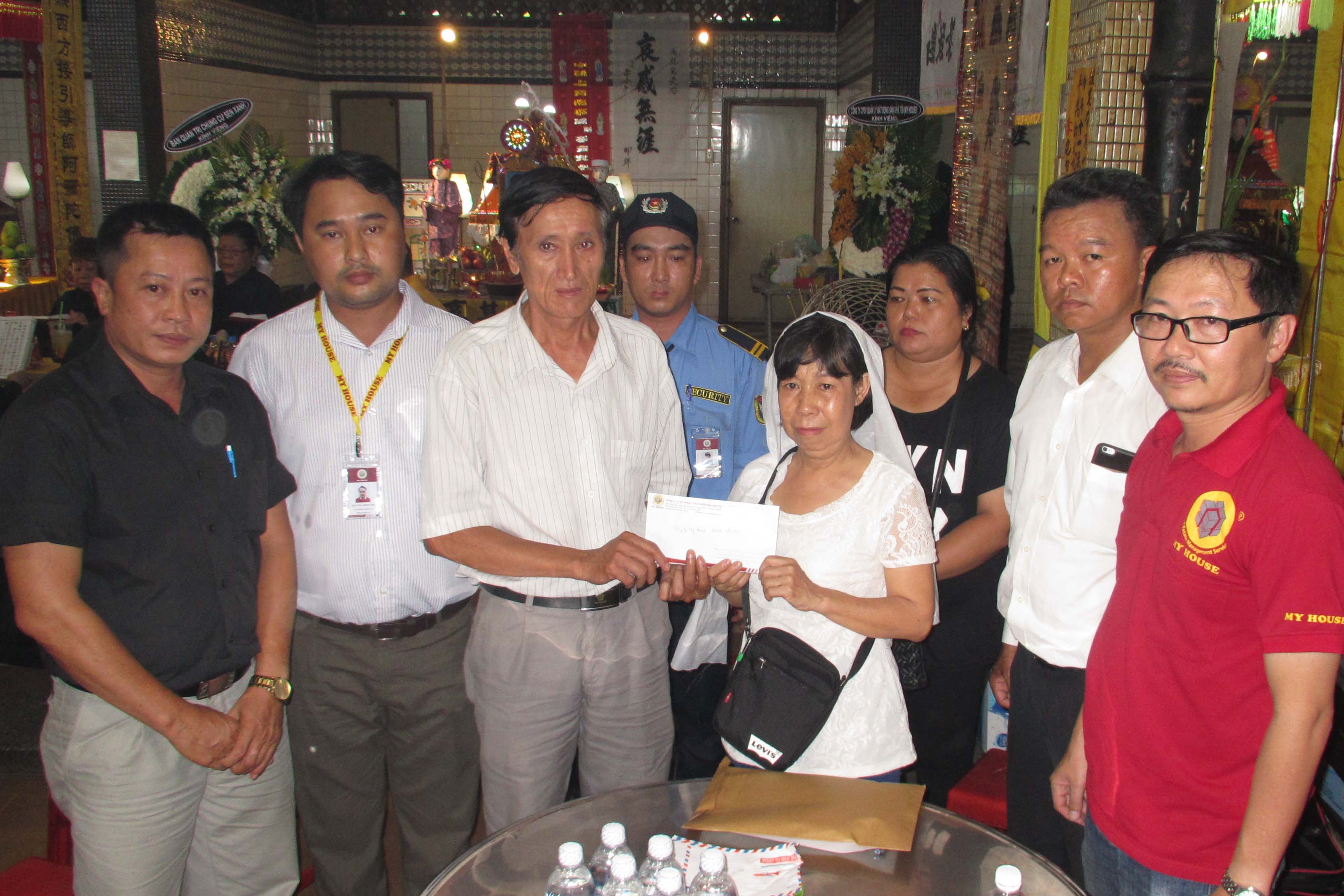 Đại diện Ban Giám đốc MY HOUSE đã đến viếng và trao tặng tiền quyên góp cho người nhà anh Thành