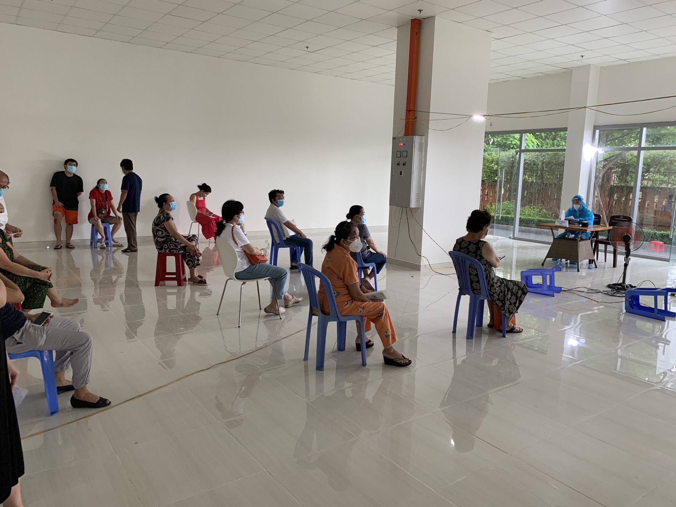 Cư dân đang ngồi chờ đến lượt.