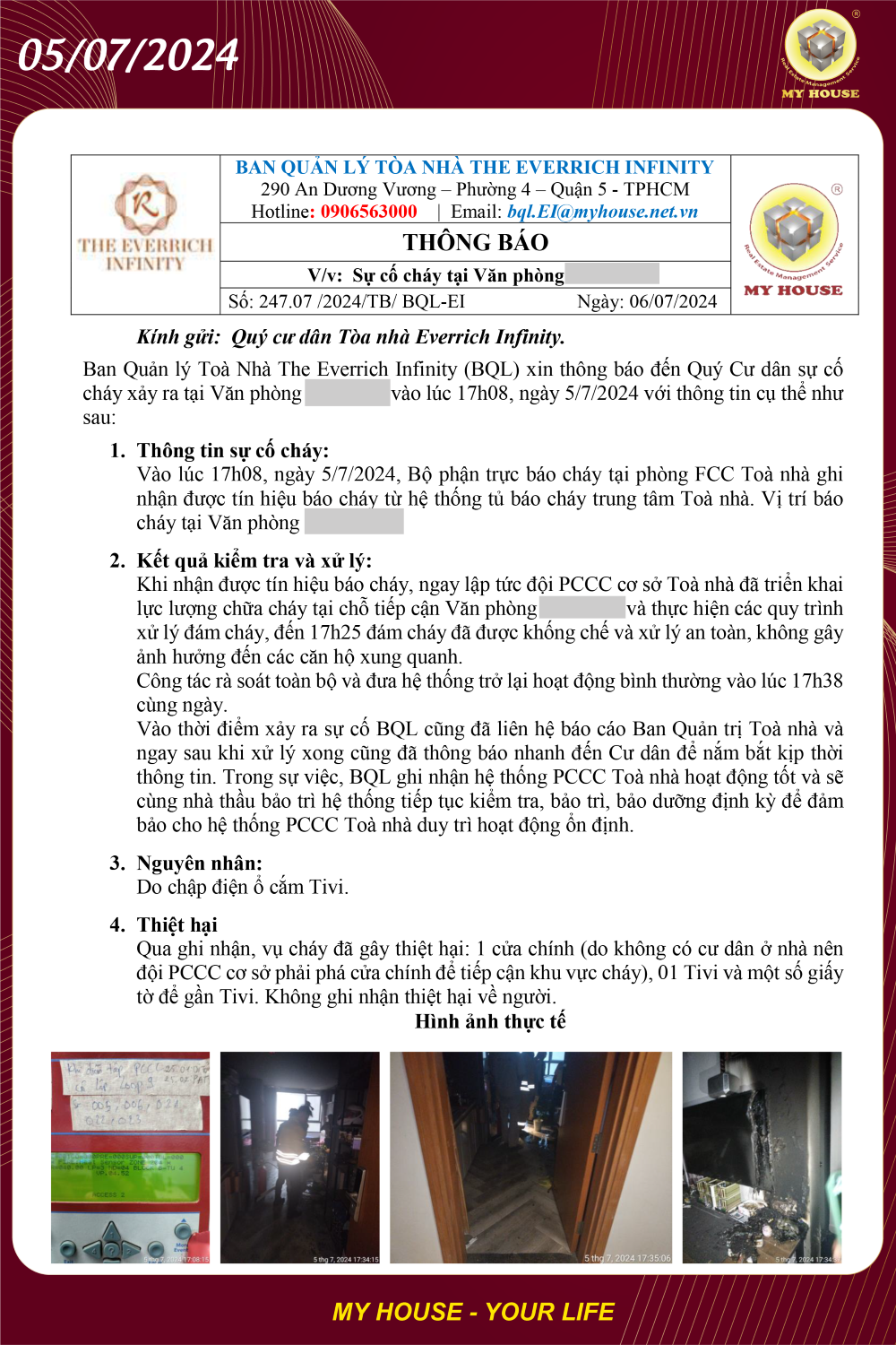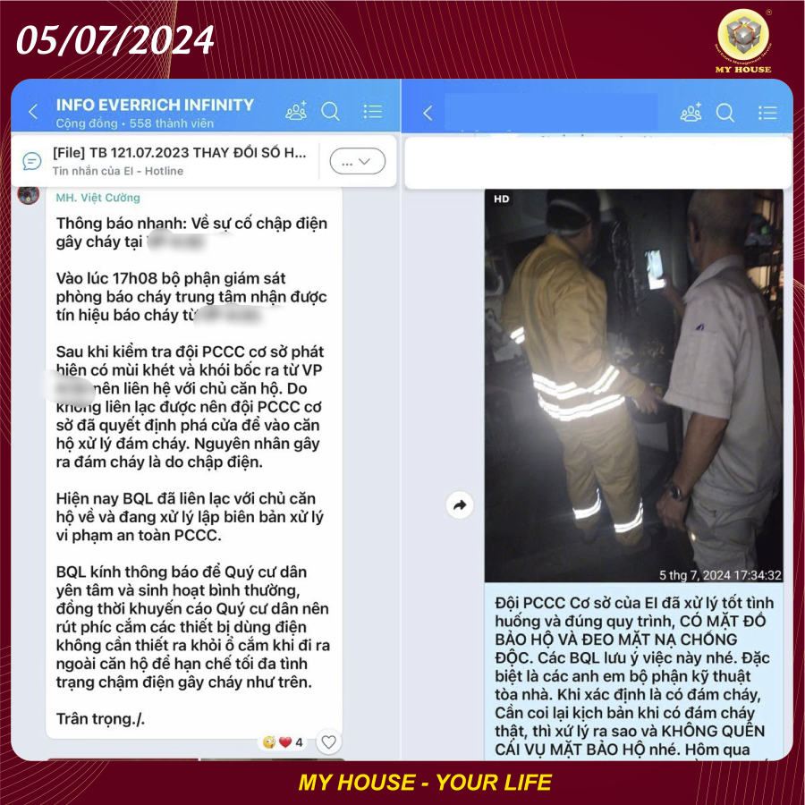 THÔNG TIN VỀ SỰ CỐ CHÁY DO CHẬP ĐIỆN VÀ PHƯƠNG ÁN XỬ LÝ KỊP THỜI TẠI TÒA NHÀ THE EVERRICH INFINITY
